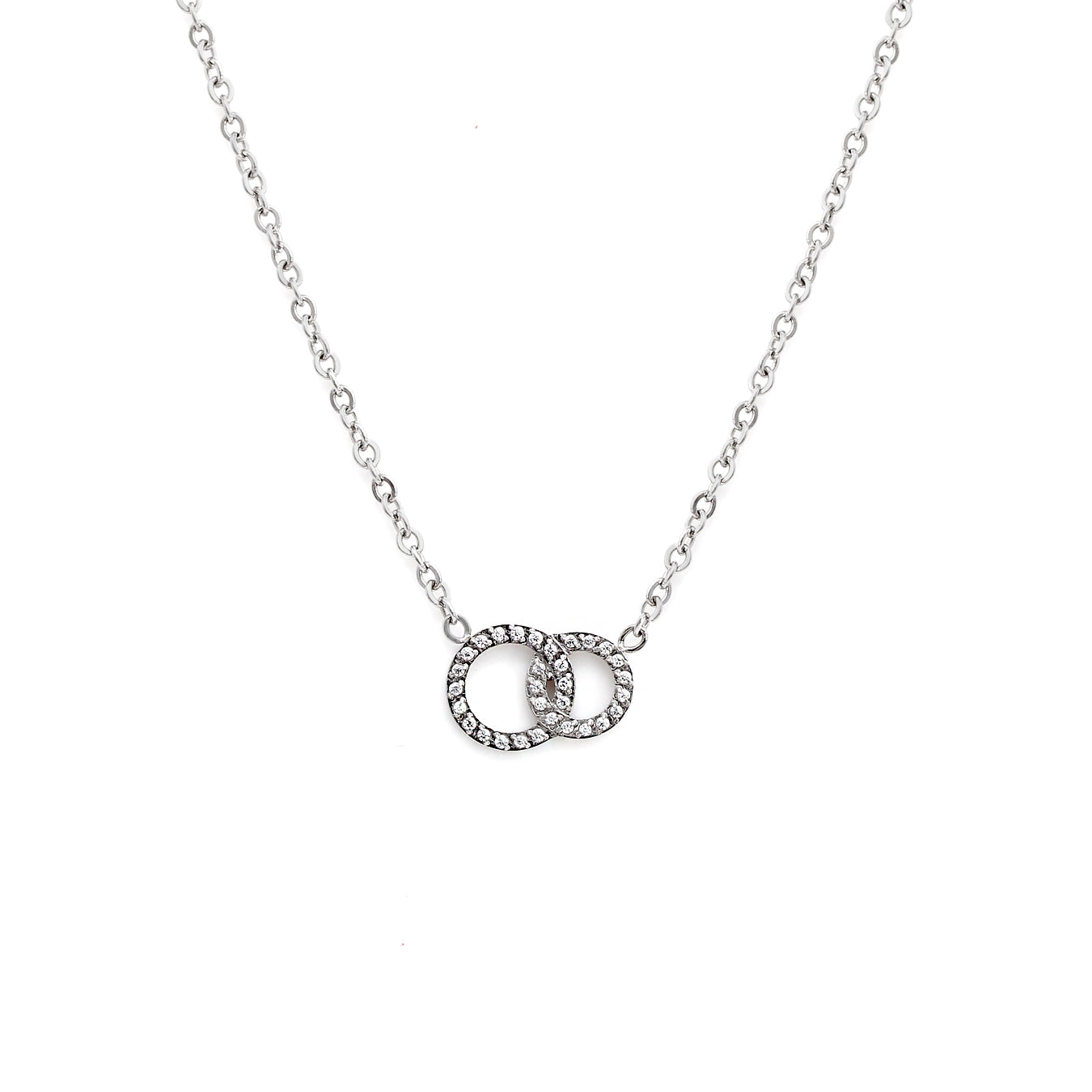 We also have a Forever Friendship necklace which features a double circle pendant encrusted with cubic zirconia stones. Perfect as a gift for a valued friend, this will be cherished and worn for years to come. It is perfectly worn alone or stacked with other necklaces from the collection.
