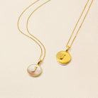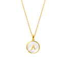 Introducing the Initial Pearl Token Necklace. Featuring your chosen initial on a pearl token pendant and attached to an 18 inch yellow gold plated chain.