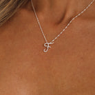 Elevate your style with our exquisite Silver Luxe Initial Necklace. Expertly crafted from premium sterling silver, this necklace showcases a personalized initial pendant adorned with sparkling cubic zirconia stones in a pave setting. The pendant gracefully hangs from a delicate 1.5mm twist chain, offering a blend of sophistication and elegance that's perfect for any occasion.