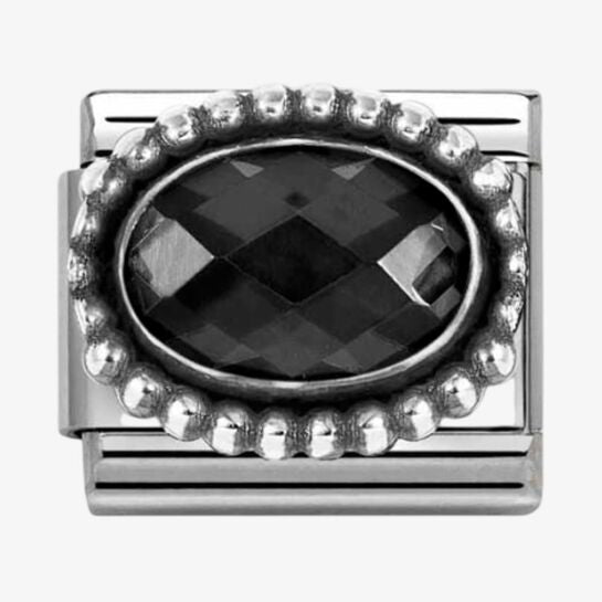 Nomination Classic Silver Mother of Pearl Black Flower Link