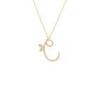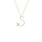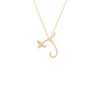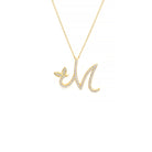 1 Inch Winged Full CZ Stones Initial Necklace - Yellow Gold
