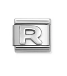 Original Nomination Link for Composable Classic Bracelets in stainless steel and sterling silver with oxidised vintage effect with Alphabet Letter R. Made in Italy. The new Silvershine letters in sterling silver are modern, linear little miracles of craftsmanship that are affordable and meant for everyone, regardless of gender. Tell your story, one letter at a time.