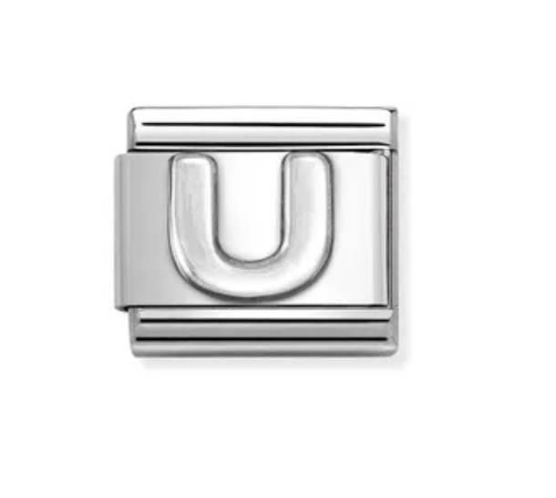 Original Nomination Link for Composable Classic Bracelets in stainless steel and sterling silver with oxidised vintage effect with Alphabet Letter U. Made in Italy. The new Silvershine letters in sterling silver are modern, linear little miracles of craftsmanship that are affordable and meant for everyone, regardless of gender. Tell your story, one letter at a time.