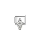 Original Nomination Composable Classic Link for Composable bracelet in stainless steel with silver with White Cubic Zirconia on Letter V Pendant. Keep someone dear to you with you always.