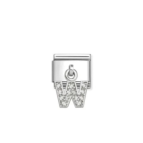 Original Nomination Composable Classic Link for Composable bracelet in stainless steel with silver with White Cubic Zirconia on Letter W Pendant. Keep someone dear to you with you always.