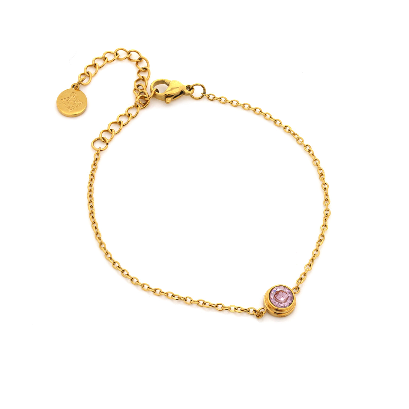 Dainty Bezel Bracelet - Yellow Gold & Pink Stone