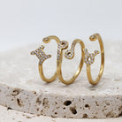 This stunning Cancer Ring in Yellow Gold is crafted from stainless steel and features dazzling CZ feature stones on an adjustable ring.