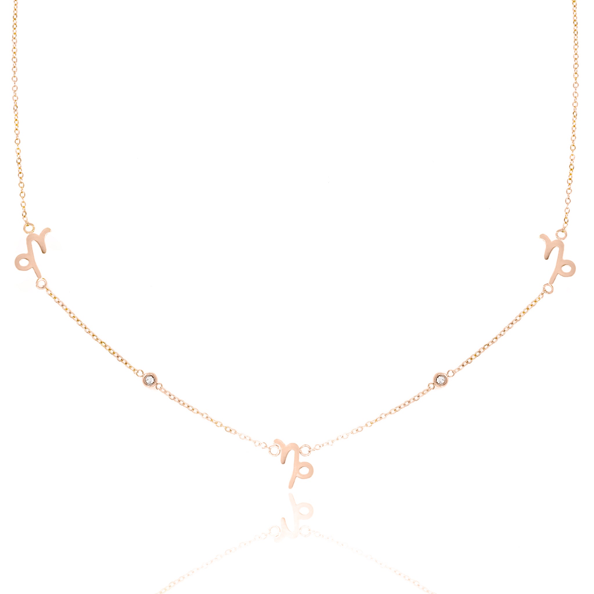 This stunning Capricorn Necklace in Rose Gold is crafted from stainless steel and features dazzling CZ feature stones on an 18-inch chain.
