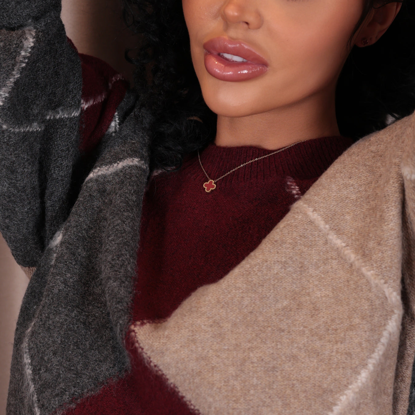 Every piece features a signature four-leaf clover pendant, adorned with a vivid cherry red crystal that captures the light with every movement. Symbolising love, luck, and confidence, this striking combination of rich red and warm gold makes a timeless statement of sophistication.