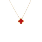 Cherry Red Crystal Clover Necklace - Yellow Gold
