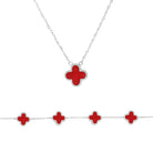 Bring luck and elegance together with the Cherry Red Crystal Clover Gift Set. Featuring a matching necklace and bracelet, this set is crafted from durable stainless steel in a sleek silver finish and accented with radiant cherry red-coloured crystals for a touch of sparkle.