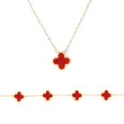Cherry Red Crystal Clover Gift Set - Yellow Gold
