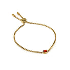 Ignite little July birthdays with the fiery beauty of this Ruby Children's Birthstone Bracelet. Crafted from stainless steel, plated in yellow gold, and designed to be waterproof and anti-fade, this bracelet holds a striking ruby gemstone in its pendant. Symbolizing passion and courage, this ruby bracelet is perfect for bold and adventurous children.