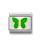 Original Nomination Classic Link in stainless steel and 18K yellow gold with Butterfly symbol with Green enamel. Made in Italy. This beautiful Green enamel captures the energy of this edition of the new edition of the Composable ClassicGold Collection - pure energy!