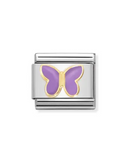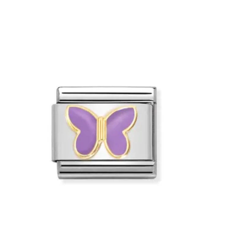 Original Nomination Classic Link in stainless steel and 18K yellow gold with Butterfly symbol with Lilac enamel. Made in Italy. This new edition of the Composable ClassicGold Collection has lively and colourful Links - choose your favourite symbol.