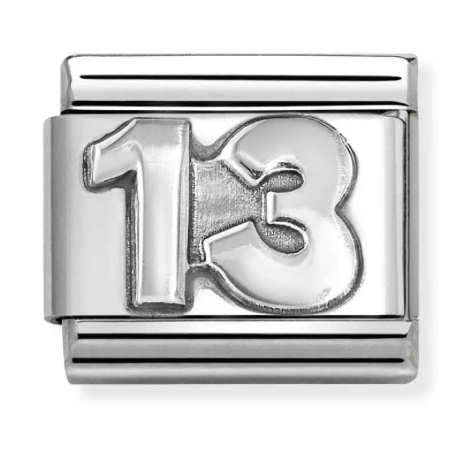 The Nomination Classic Composable Silver 13 Link features a sterling silver plate with an oxidised 40 design which is set on a stainless-steel base. The perfect memento to remember a special birthday.