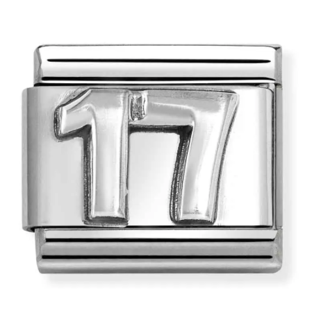 The Nomination Classic Composable Silver 17 Link features a sterling silver plate with an oxidised 17 design which is set on a stainless-steel base. The perfect memento to remember a special birthday.