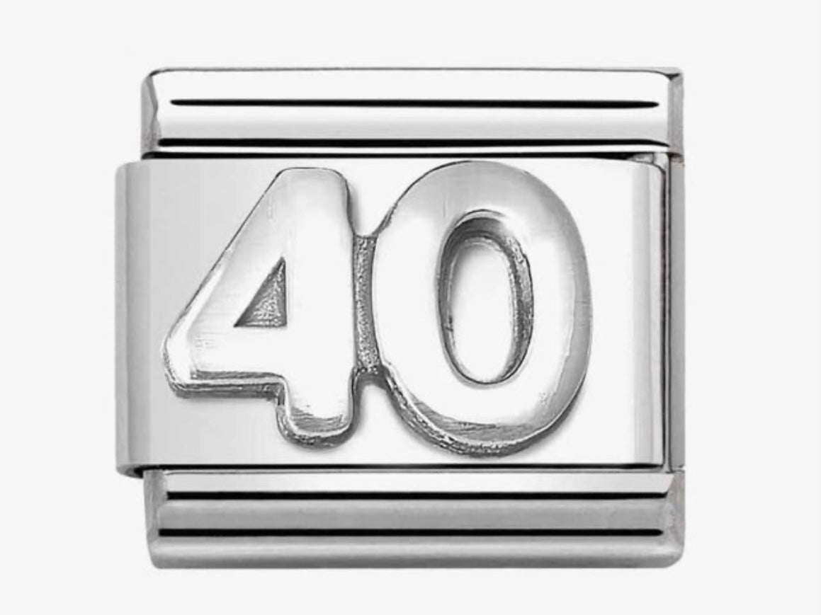 The Nomination Classic Composable Silver 40 Link features a sterling silver plate with an oxidised 40 design which is set on a stainless-steel base. The perfect memento to remember a special birthday.