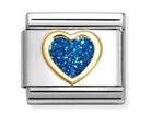 CLASSIC GLITTER ,STEEL, ENAMEL,18K GOLD BLUE HEART