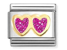 CLASSIC GLITTER , STEEL, ENAMEL,18K GOLD FUCHSIA DOUBLE HEART