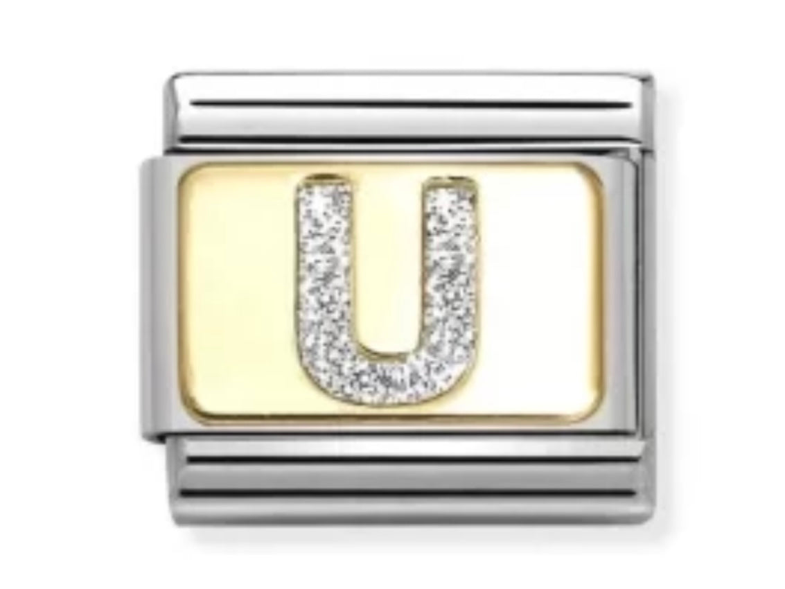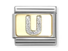 Classic gold plated letter "U" link from Nomination with glitter letter detail.