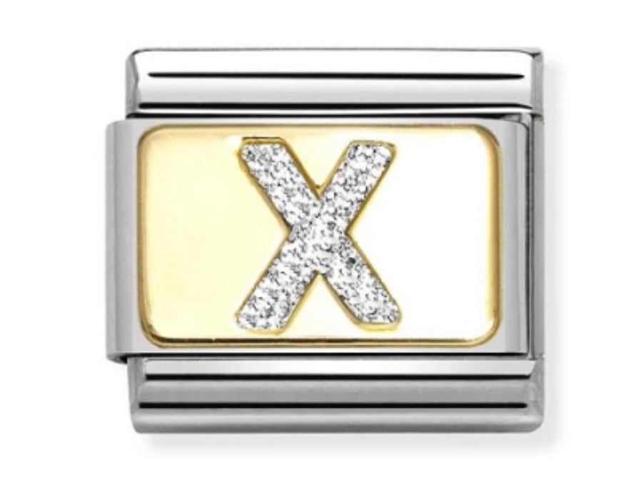 Classic gold plated letter "X" link from Nomination with glitter letter detail.