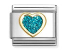 Shop the Classic Gold Light Blue Heart Link from Nomination. A silver stainless steel link featuring a light blue heart design.