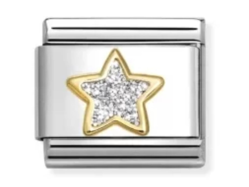 CLASSIC GLITTER,STEEL, ENAMEL, 18K GOLD SILVER STAR