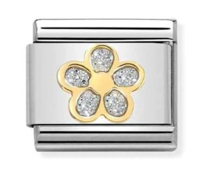 CLASSIC GLITTER ,STEEL, ENAMEL, BONDED YELLOW GOLD SILVER FLOWER