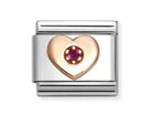 Shop the Classic Rose Gold CZ Red Heart Link from Nomination. A silver stainless steel link featuring a rose gold heart with red CZ feature.