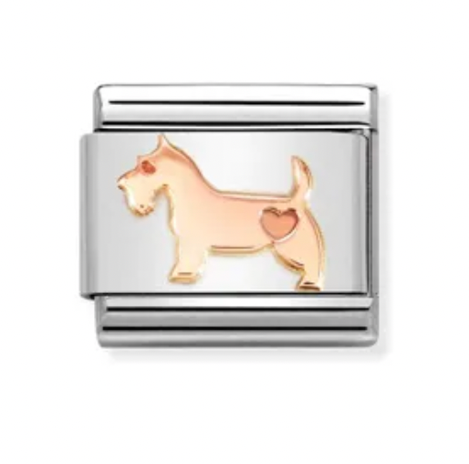 Original Nomination Classic Link in stainless steel and 9K rose gold with Dog with Heart symbol. Made in Italy. This darling new symbol is the perfect Link for any animal lover who wants two keep a beloved furry friend nearby at all times.