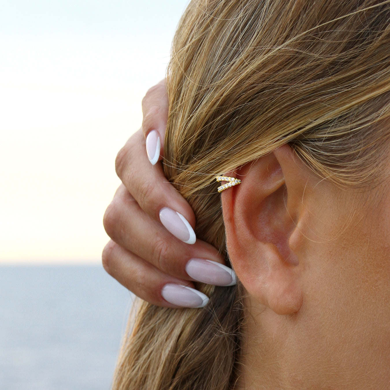 Introducing the Clear CZ Ear Cuff in Yellow Gold, taken from the stunning Arabella Chi Edit.