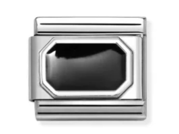Shop the Classic Blunted Black Rectangle Link from Nomination. A silver stainless steel link featuring a black enamel blunted rectangle design.