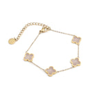 Rose Quartz Crystal Clover Bracelet - Yellow Gold