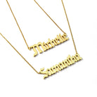 Introducing the Gothic Custom Name Necklace in Yellow Gold, taken from the stunning Arabella Chi Edit.