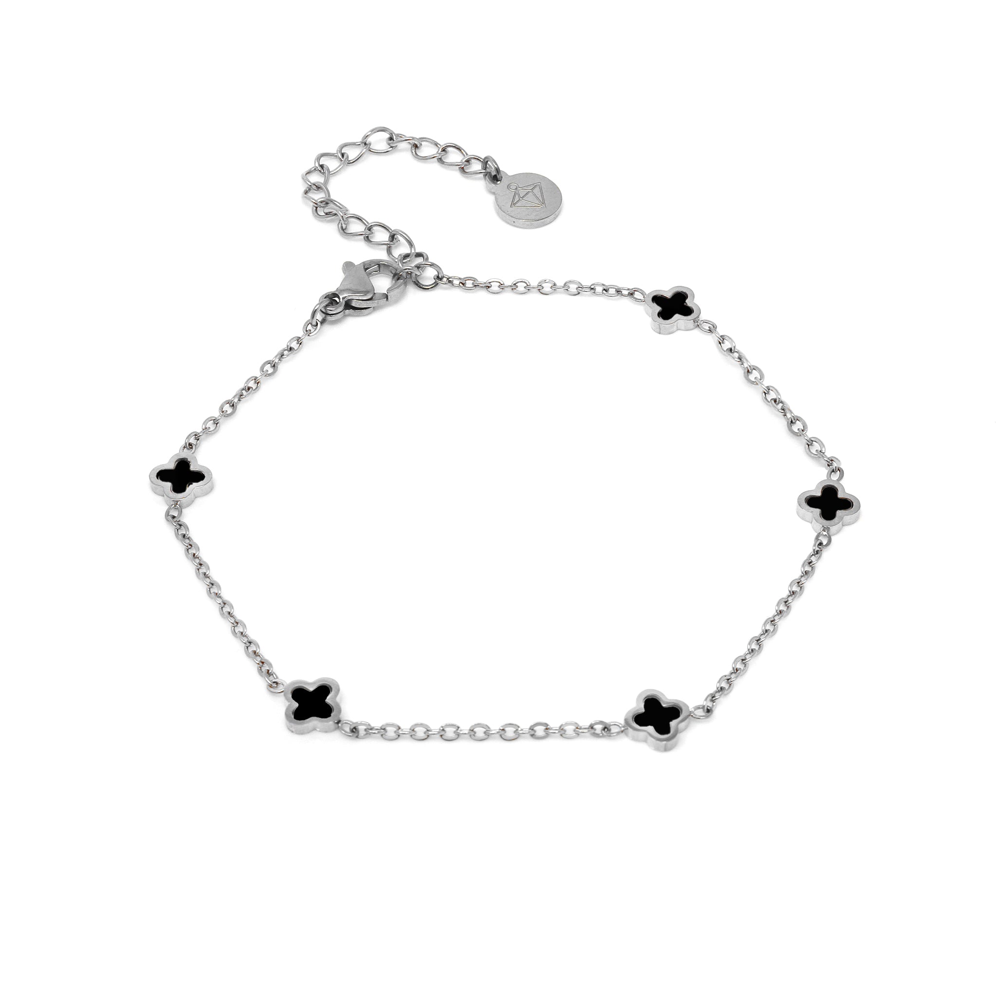 Dainty Clover Bracelet - Silver & Black