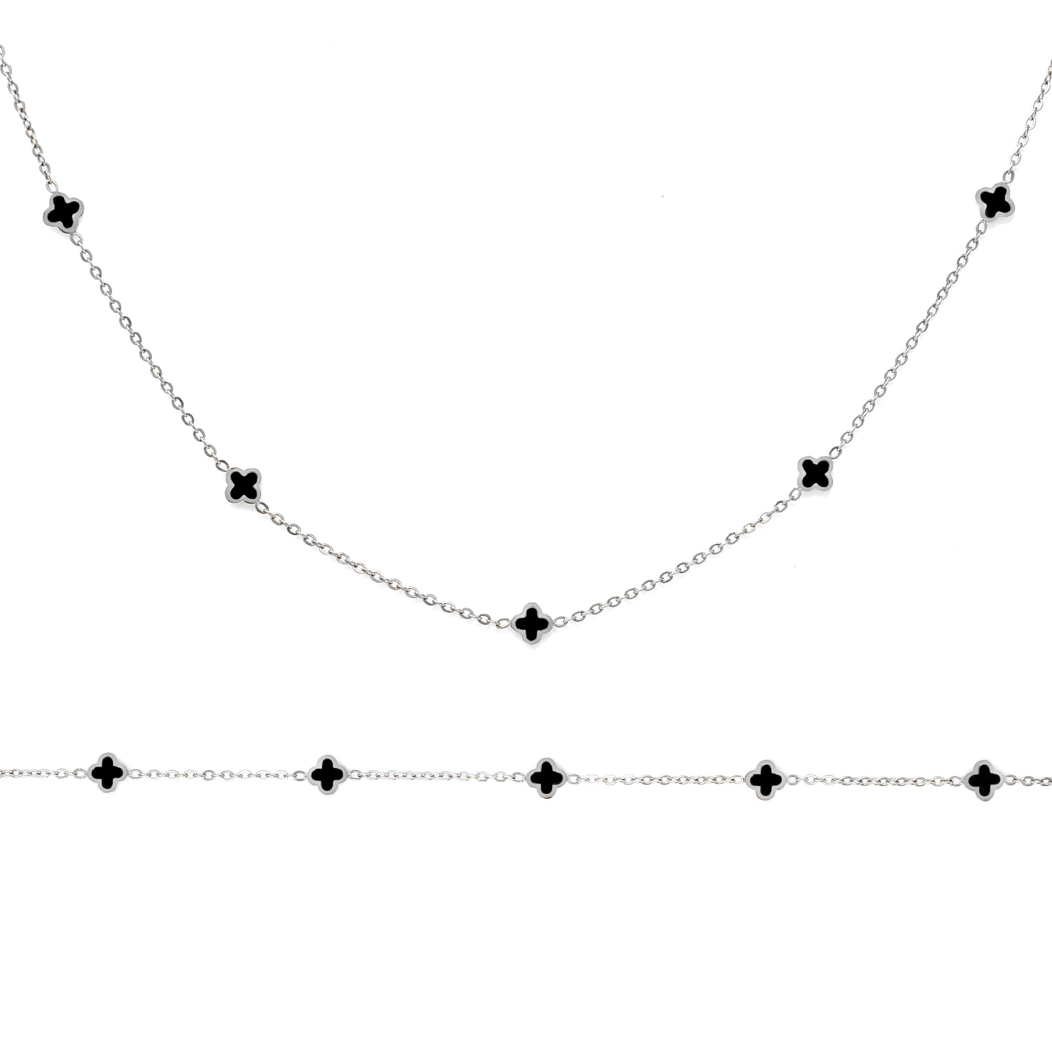Delight someone special with the Dainty Clover Gift Set in Silver & Black, a perfect pairing of elegance and charm. This set includes the Dainty Clover Bracelet and Dainty Clover Necklace, both crafted from durable stainless steel and featuring delicate, dainty clover pendants along the chain.