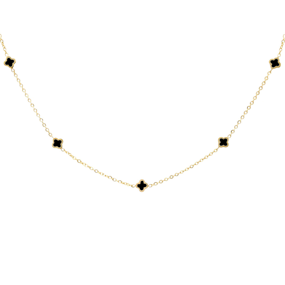 Dainty Clover Necklace - Gold & Black