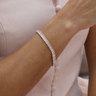 Our new Mother's Day collection features this beautiful Emerald Tennis Bracelet in Rose Gold, a statement piece sure to turn heads and complete your look.