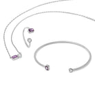 Embrace the calming beauty of February with this Amethyst Birthstone Gift Set. Made from Stainless Steel, this elegant set features a necklace with a rich purple amethyst pendant, a matching bangle with an embedded amethyst gemstone, and an adjustable amethyst ring. This set is a graceful and stylish way to bring tranquillity and elegance to your jewellery collection, making it a perfect gift for yourself or a loved one.