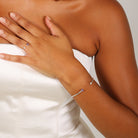 Celebrate February’s Amethyst with this graceful bangle. Crafted from Stainless Steel, meaning the bangle is waterproof, anti-tarnish and anti-fade. Measuring 7 inches, it features a stunning purple gem renowned for its calming and balancing properties. This piece is an exquisite choice for those who appreciate both elegance and inner peace.