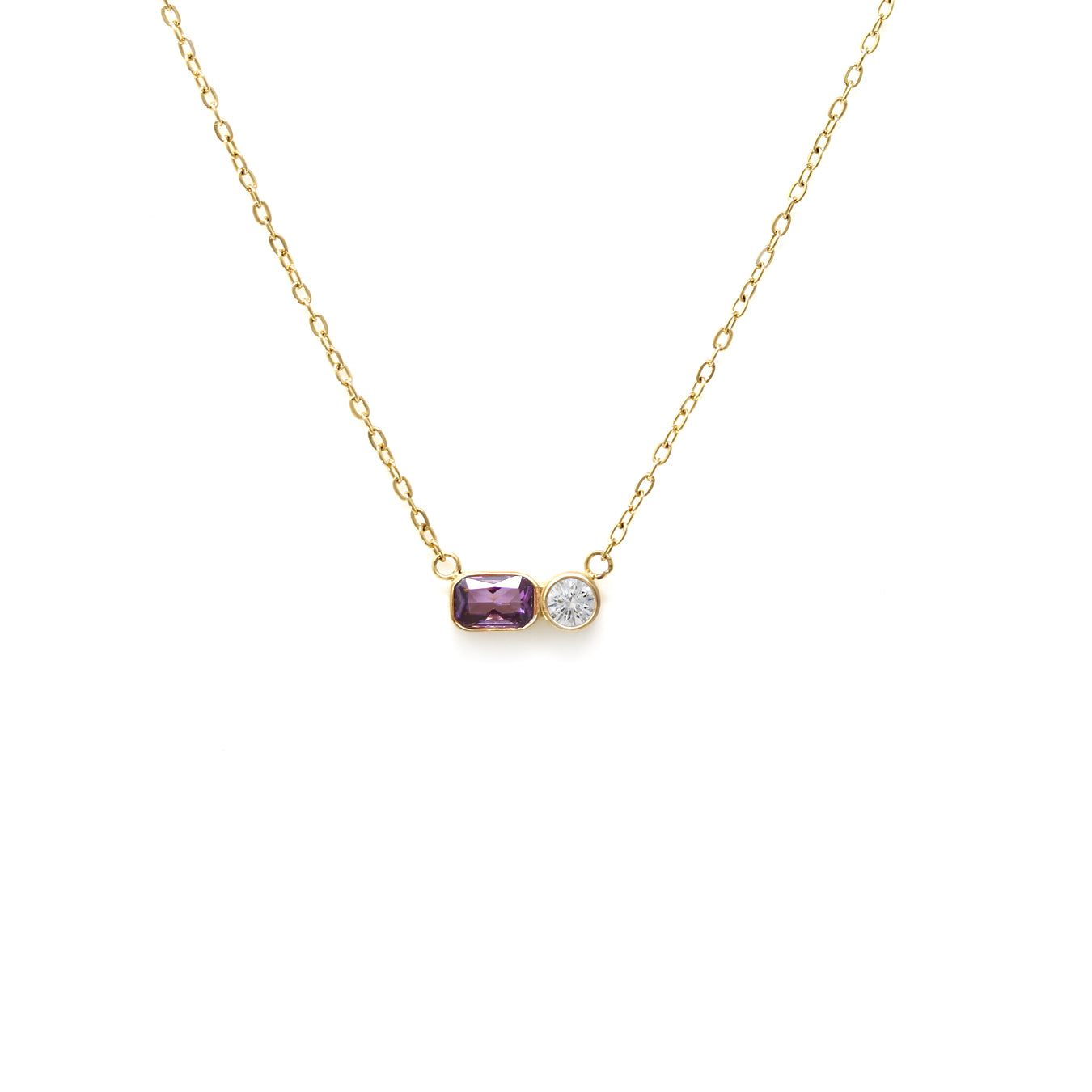 Embrace the soothing beauty of February with our Amethyst Birthstone Necklace. The 18-inch yellow gold-plated Stainless Steel chain holds a captivating purple amethyst alongside a brilliant cubic zirconia. The material ensures this necklace is waterproof, anti-fade and anti-tarnish. This elegant piece radiates tranquillity and inner peace, ideal for those who appreciate grace and refinement.
