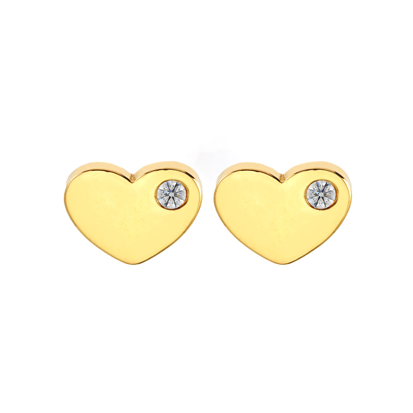 Fall in love with timeless elegance with our Flat CZ Heart Earrings in Yellow Gold. Expertly crafted from premium stainless steel and plated in yellow gold, these earrings are designed to be as durable as they are beautiful. Waterproof, anti-tarnish, and fade-resistant, they promise to retain their stunning shine for years to come.