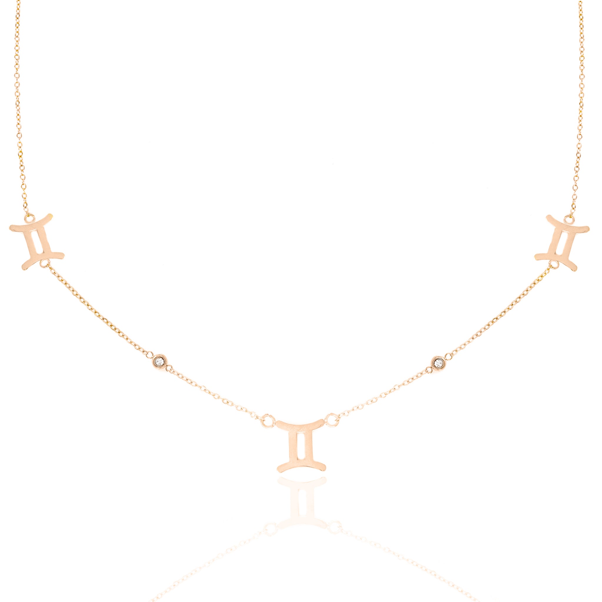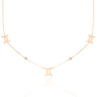 This stunning Gemini Necklace in Rose Gold is crafted from stainless steel and features dazzling CZ feature stones on an 18-inch chain.