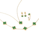Green Crystal Clover 4-Piece Gift Set - Yellow Gold