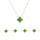 Green Crystal Clover Gift Set - Yellow Gold