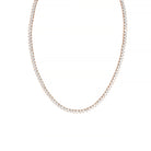 Soft, romantic, and endlessly radiant. Our Heart Tennis Necklace in Rose Gold is crafted from sterling silver and plated in luminous rose gold, offering a warm, feminine glow that complements every skin tone. Sparkling round cubic zirconia stones are set elegantly along the chain in a three-claw setting, creating the illusion of tiny hearts that catch the light with every movement.