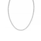 Fall in love with timeless elegance. Our Heart Tennis Necklace in Silver is crafted from premium sterling silver, designed to add a touch of brilliance to every occasion. Each round cubic zirconia stone is delicately set in a three-claw setting, creating a stunning illusion of tiny hearts that shimmer with every movement.