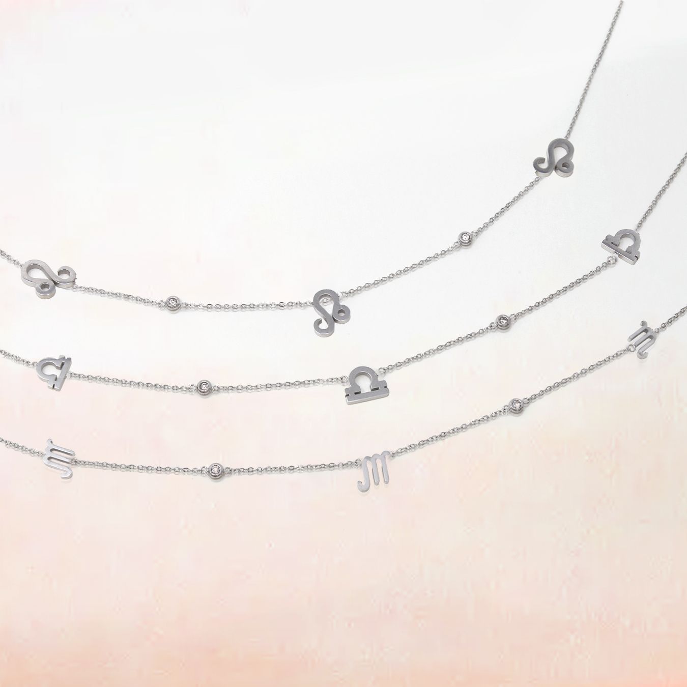 Libra Necklace with CZ Stones - Silver