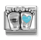 Nomination Classic Silver Baby Feet with Blue Heart Link